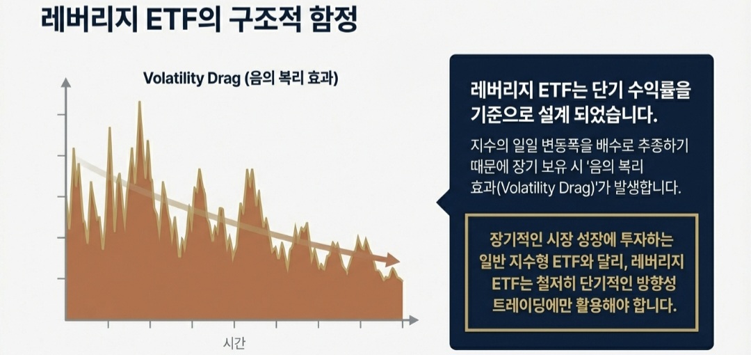또한 레버리지 ETF는 일간 수익률을 기준으로 설계되어 장기 보유 시 복리 효과로 인해 수익률이 왜곡될 수 있습니다. 세금 구조도 확인해야 하며, 해외 ETF의 경우 환율 변동 위험도 고려해야 합니다. 자신의 투자 기간과 목적에 맞는 ETF를 선택하는 것이 중요합니다.